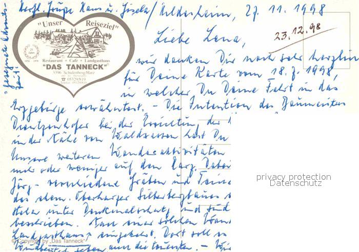 72696466 Schulenberg Oberharz Brockenblick Okertalsperre Gaststaette Restaurant Tanneck postalisch nicht gelaufen Erhaltung siehe scans [FriedD77] KatCode: 11110003153011