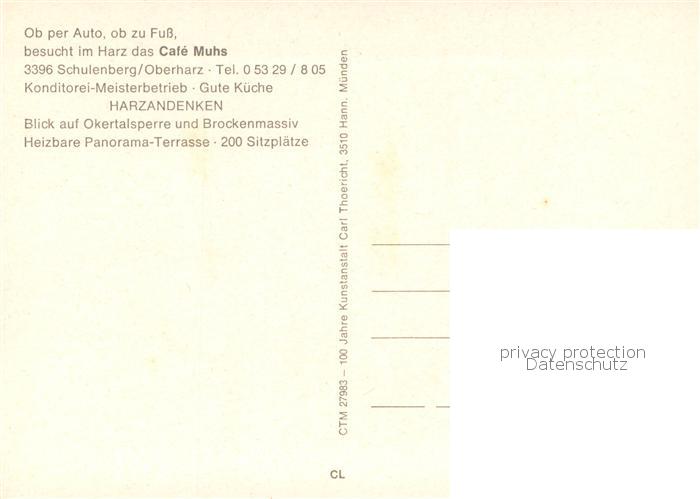73764394 Schulenberg Oberharz Cafe Muhs postalisch nicht gelaufen Erhaltung siehe scans [FriedD77] KatCode: 11110003153011