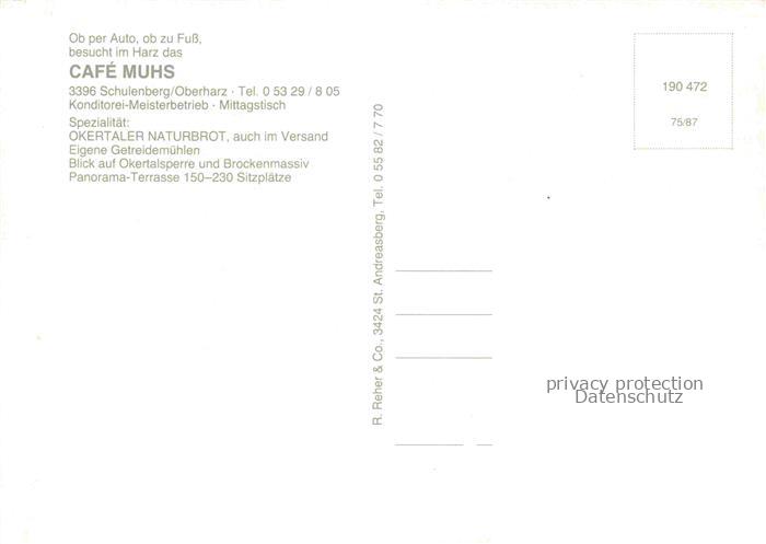 74096110 Schulenberg Oberharz Cafe Muhs postalisch nicht gelaufen Erhaltung siehe scans [WerneD78] KatCode: 11110003153011