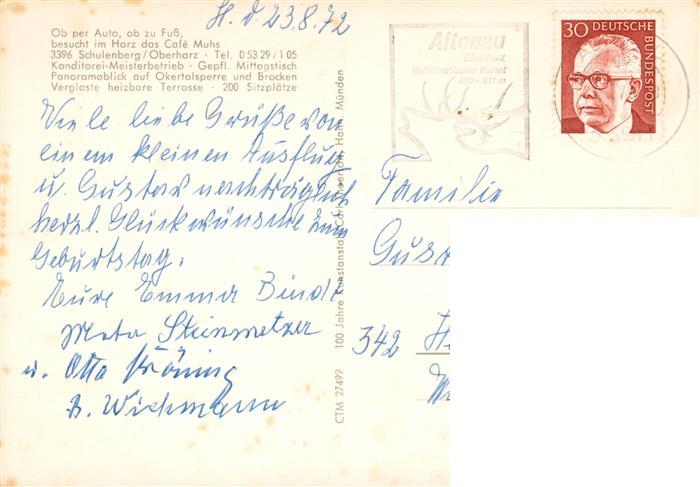 73882924 alte Postkarte Schulenberg Oberharz Cafe Muhs Gastraum Okertalsperre Panorama postalisch gelaufen Erhaltung siehe scans [WerneD78] KatCode: 11110003153011