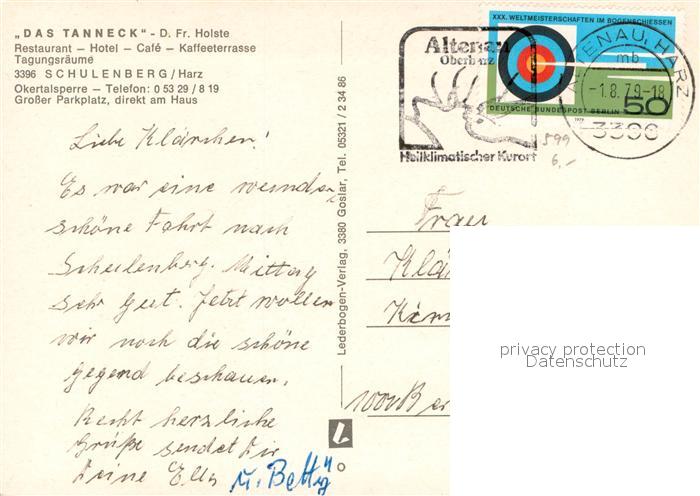 73653555 alte Postkarte Schulenberg Oberharz Das Tanneck Restaurant Hotel Kaffeeterrasse Segelregatta postalisch gelaufen Erhaltung siehe scans [WerneD78] KatCode: 11110003153011