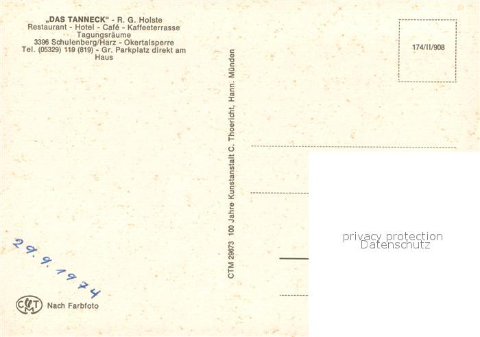 73685440 Schulenberg Oberharz Das Tanneck Restaurant Hotel Kaffeeterrasse postalisch nicht gelaufen Erhaltung siehe scans [WerneD78] KatCode: 11110003153011