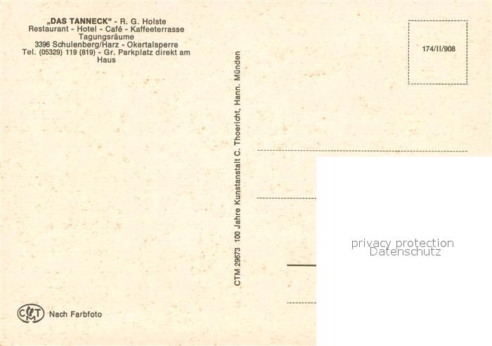 73666294 Schulenberg Oberharz Das Tanneck Restaurant Hotel postalisch nicht gelaufen Erhaltung siehe scans [LiesaD40] KatCode: 11110003153011
