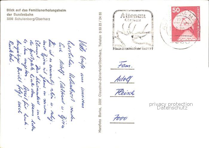 72136857 alte Postkarte Schulenberg Oberharz Familienerholungsheim der Bundesbahn postalisch gelaufen Erhaltung siehe scans KatCode: 11110003153011