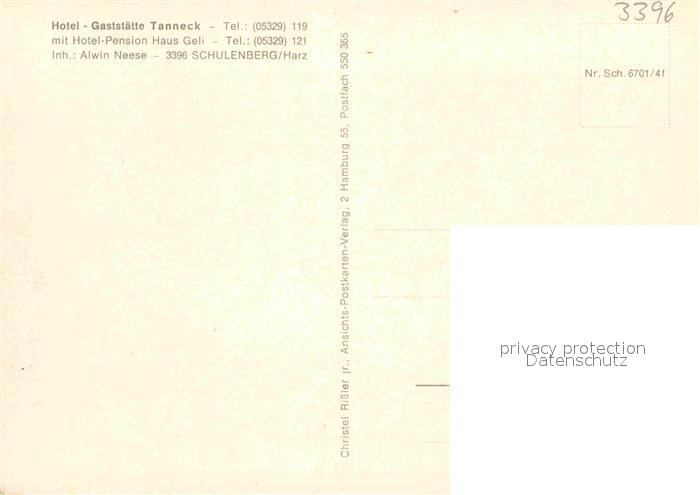 72914880 Schulenberg Oberharz Hotel Gaststaette Tanneck Okertalsperre Hotel Pension Haus Geli postalisch nicht gelaufen Erhaltung siehe scans [FriedD77] KatCode: 11110003153011