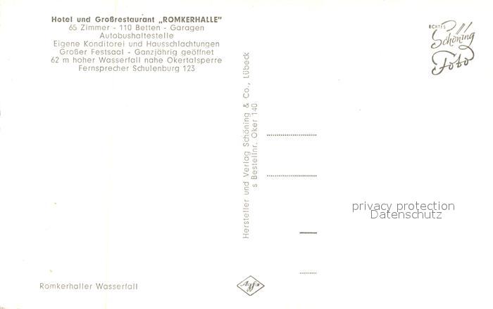 73136893 Schulenberg Oberharz Hotel Restaurant Romkerhalle Romkerhaller Wasserfall im Winter postalisch nicht gelaufen Erhaltung siehe scans [FriedD77] KatCode: 11110003153011