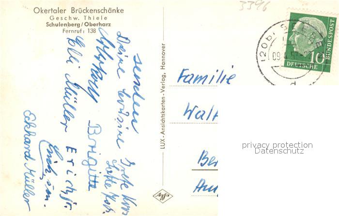 43351079 alte Postkarte Schulenberg Oberharz Okertalsperre Bramkebruecke Okertal postalisch gelaufen Erhaltung siehe scans [KathaD81] KatCode: 11110003153011