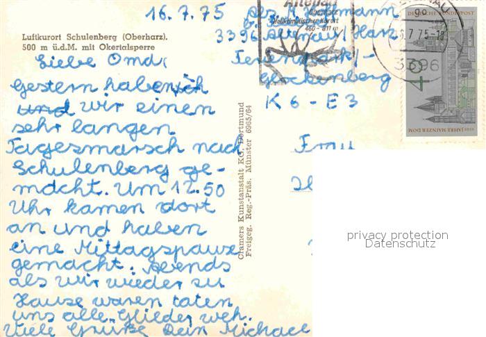 72765270 alte Postkarte Schulenberg Oberharz Okertalsperre Fliegeraufnahme postalisch gelaufen Erhaltung siehe scans [FriedD77] KatCode: 11110003153011