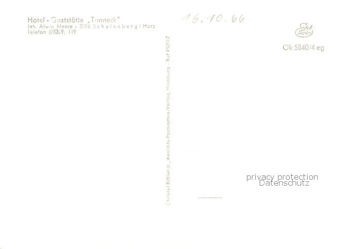 73770059 Schulenberg Oberharz Okertalsperre Hotel Gaststaette Tanneck postalisch nicht gelaufen Erhaltung siehe scans [WerneD78] KatCode: 11110003153011