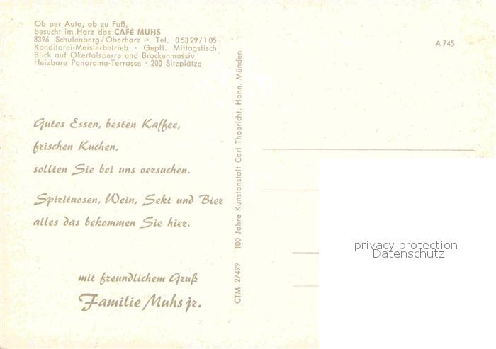 72697688 Schulenberg Oberharz Panorama Cafe Muhs Okertalsperre postalisch nicht gelaufen Erhaltung siehe scans [FriedD77] KatCode: 11110003153011