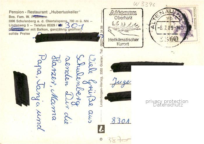73099388 alte Postkarte Schulenberg Oberharz Pension Restaurant Hubertuskeller Okertalsperre Gaststube postalisch gelaufen Erhaltung siehe scans [WerneD78] KatCode: 11110003153011