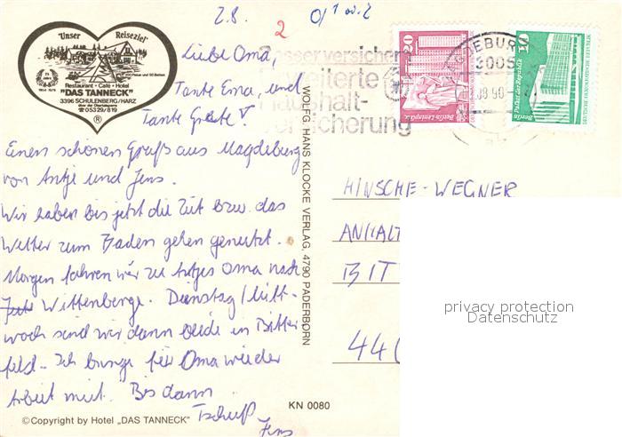 73107344 alte Postkarte Schulenberg Oberharz Tanneck postalisch gelaufen Erhaltung siehe scans [NatalD47] KatCode: 11110003153011