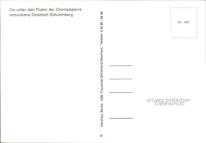 72230314 Schulenberg Oberharz Versunkene Ortschaft unter den Fluten der Okertalsperre postalisch nicht gelaufen Erhaltung siehe scans KatCode: 11110003153011