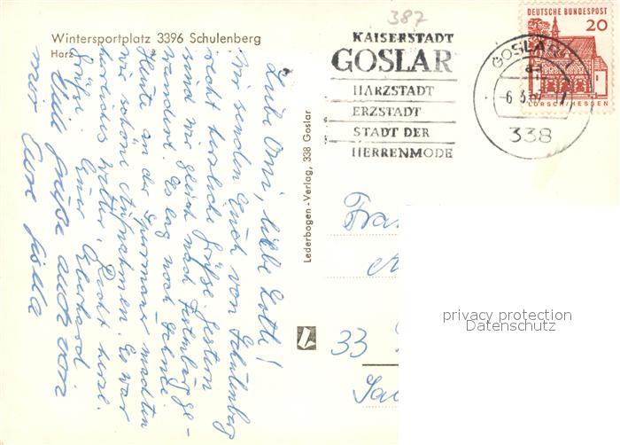 73335572 alte Postkarte Schulenberg Oberharz Wintersportplatz Skipiste Berghotel Restaurant Landschaftspanorama postalisch gelaufen Erhaltung siehe scans [FriedD77] KatCode: 11110003153011