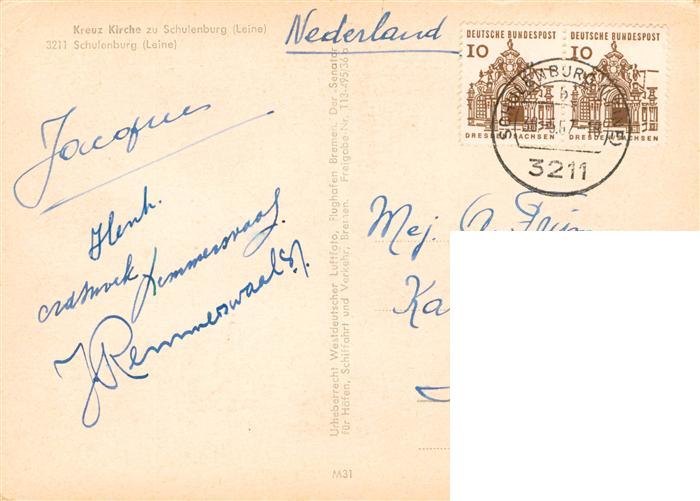 73898366 alte Postkarte Schulenburg Leine Kreuz Kirche Fliegeraufnahme postalisch gelaufen Erhaltung siehe scans [WerneD78] KatCode: 11110003241013