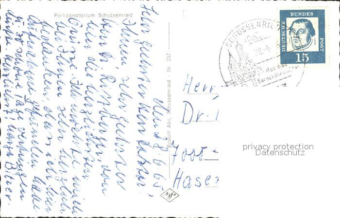 72253032 alte Postkarte Schussenried Bad Parksanatorium postalisch gelaufen Erhaltung siehe scans KatCode: 11110008426014