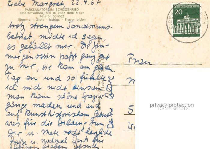 73841000 alte Postkarte Schussenried Bad Parksanatorium Schussenried Fontaene postalisch gelaufen Erhaltung siehe scans [WerneD78] KatCode: 11110008426014