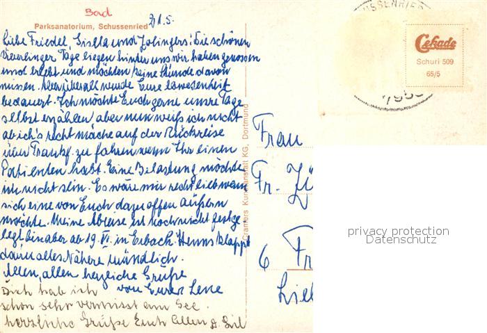 73122308 alte Postkarte Schussenried Bad Parksanatorium postalisch gelaufen Erhaltung siehe scans [KathaD81] KatCode: 11110008426014