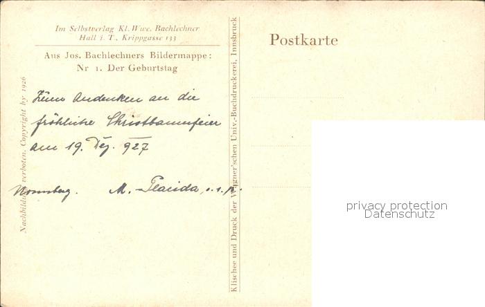 Schutzengel Kind Kuenstlerkarte Josef Bachlechner Nr. 1 Der Geburtstag postalisch nicht gelaufen Erhaltung siehe scans