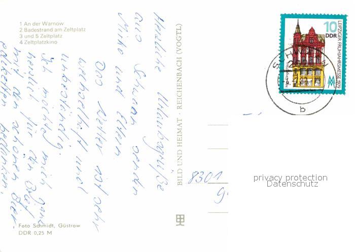 72640347 alte Postkarte Schwaan An der Warnow Badestrand Zeltplatz Zeltplatzkino postalisch gelaufen Erhaltung siehe scans [WerneD78] KatCode: 11110013051071