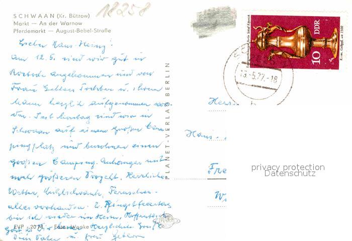 72639426 alte Postkarte Schwaan Markt Warnow Pferdemarkt August Bebel Strasse postalisch gelaufen Erhaltung siehe scans [KathaD79] KatCode: 11110013051071