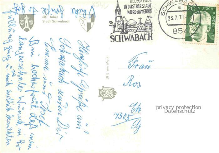 74049930 alte Postkarte Schwabach Bayern 600 Jahre Jubilaeum Motive Stadtzentrum Kirche Marktplatz Brunnen postalisch gelaufen Erhaltung siehe scans [FriedD77] KatCode: 11110009565000
