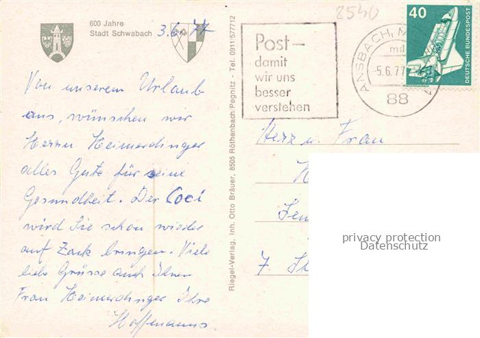 74049916 alte Postkarte Schwabach Bayern Marktplatz Brunnen Altstadt postalisch gelaufen Erhaltung siehe scans [FriedD77] KatCode: 11110009565000