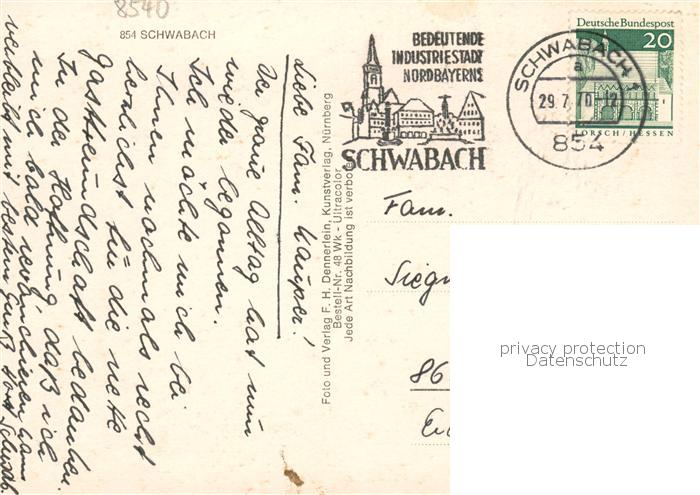 73867930 alte Postkarte Schwabach Ev Stadtpfarrkirche Rathaus St Johanniskirche Rathaus Marktplatz Stadtkrankenhaus I postalisch gelaufen Erhaltung siehe scans [WerneD78] KatCode: 11110009565000