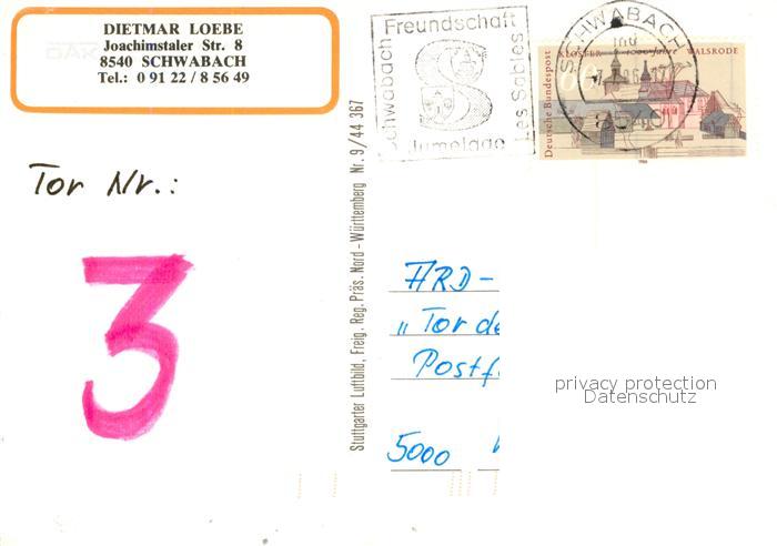 73322289 alte Postkarte Schwabach Fliegeraufnahme postalisch gelaufen Erhaltung siehe scans [KathaD81] KatCode: 11110009565000