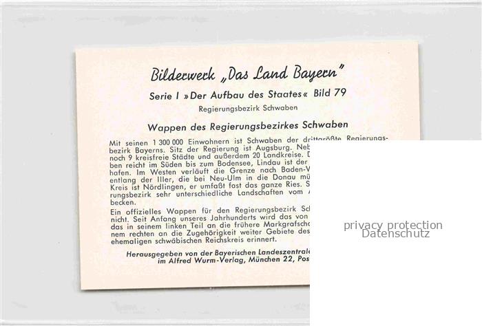 Schwaben Niederbayern Wappen des Regierungsbezirks Schwaben postalisch nicht gelaufen Werbekarte (keine Postkarte) Erhaltung siehe scans [WerneD78] Werbekarte (keine Postkarte) Wern Katcode 11110009273137