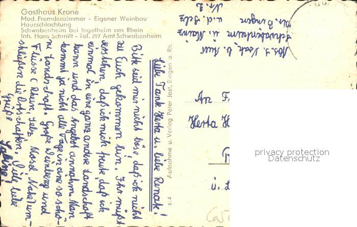 31728147 alte Postkarte Schwabenheim Gasthaus Krone Innen postalisch gelaufen Erhaltung siehe scans KatCode: 11110007339051
