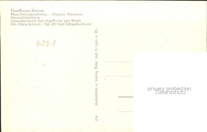 31720162 Schwabenheim Gasthaus Krone postalisch nicht gelaufen Erhaltung siehe scans KatCode: 11110007339051