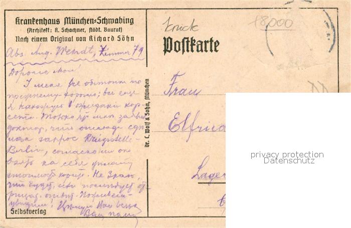 43149454 alte Postkarte Schwabing Muenchen Krankenhaus Kuenstlerkarte Richard Soehn postalisch gelaufen Erhaltung siehe scans [KathaD81] KatCode: 11110009162000
