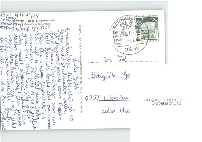 72330326 alte Postkarte Schwabstedt Holbek Gaststaette Jaegersruh postalisch gelaufen Erhaltung siehe scans KatCode: 11110001054116