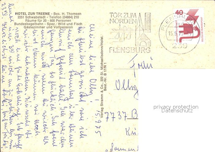 72495933 alte Postkarte Schwabstedt Hotel zur Treene postalisch gelaufen Erhaltung siehe scans KatCode: 11110001054116