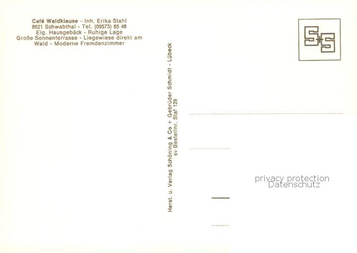 73845507 Schwabthal Cafe Waldklause Gastraeume Theke postalisch nicht gelaufen Erhaltung siehe scans [WerneD78] KatCode: 11110009478165