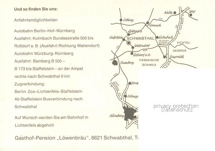 73654192 Schwabthal Gasthof Pension Loewenbraeu Restaurant Kirche Panorama postalisch nicht gelaufen Werbekarte (keine Postkarte) Erhaltung siehe scans [FriedD77] KatCode: 11110009478165