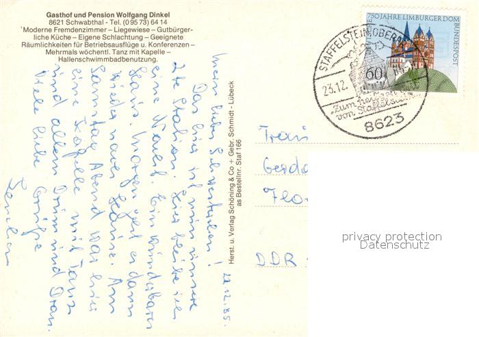 73087332 alte Postkarte Schwabthal Gasthof-Pension Wolfgang Din kel Loewenbraeu postalisch gelaufen Erhaltung siehe scans [PaolaD17] KatCode: 11110009478165