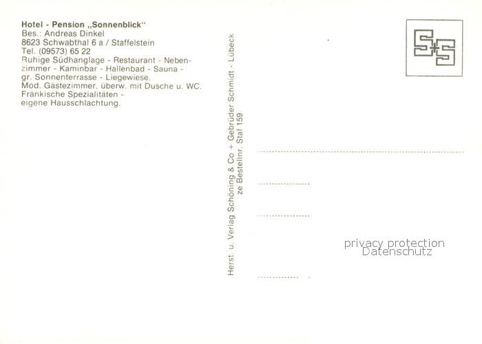 73642654 alte Postkarte Schwabthal Kirche Gasthof Pension Sonnenblick Strand Gastraum postalisch gelaufen Erhaltung siehe scans [WerneD78] KatCode: 11110009478165