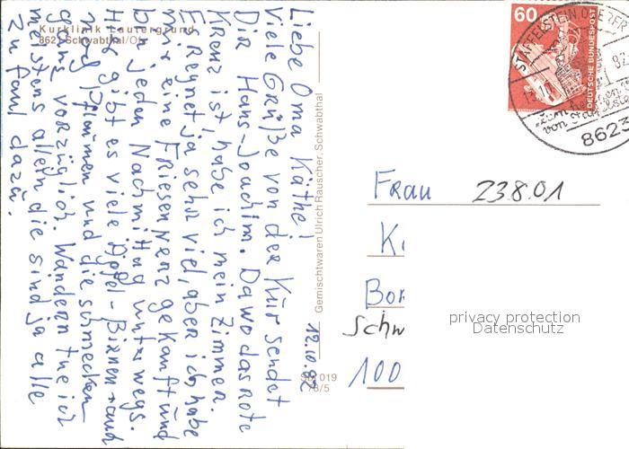 72421203 alte Postkarte Schwabthal Kurklinik Lautergrund postalisch gelaufen Erhaltung siehe scans KatCode: 11110009478165