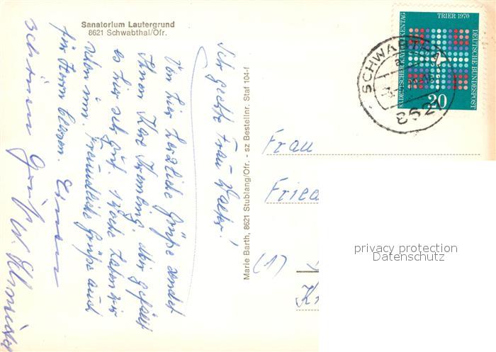 72974181 alte Postkarte Schwabthal Sanatorium Lautergrund postalisch gelaufen Erhaltung siehe scans [PaolaD17] KatCode: 11110009478165