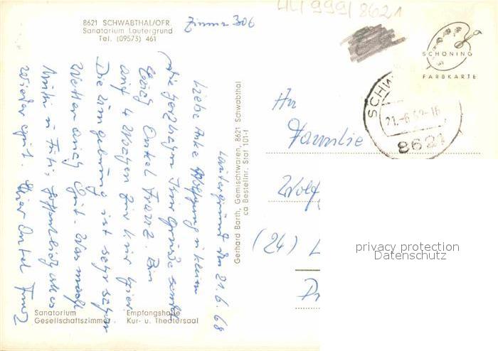 72877161 alte Postkarte Schwabthal Sanatorium Lautergrund postalisch gelaufen Erhaltung siehe scans [FriedD77] KatCode: 11110009478165
