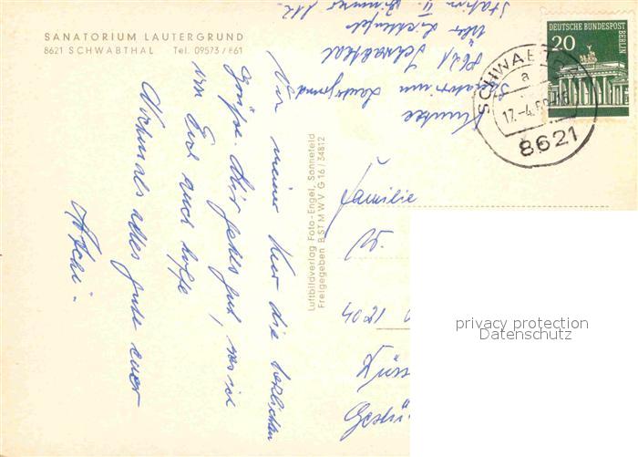 72625800 alte Postkarte Schwabthal Sanatorium Lautergrund Fliegeraufnahme postalisch gelaufen Erhaltung siehe scans [FriedD77] KatCode: 11110009478165