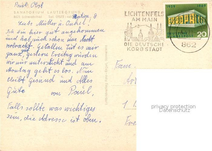 73230420 alte Postkarte Schwabthal Sanatorium Lautergrund Fliegeraufnahme postalisch gelaufen Erhaltung siehe scans [FriedD77] KatCode: 11110009478165