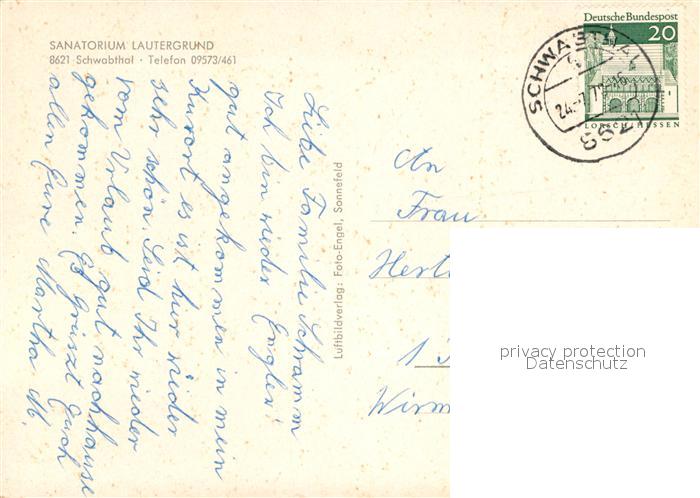 72974180 alte Postkarte Schwabthal Sanatorium Lautergrund Fliegeraufnahme postalisch gelaufen Erhaltung siehe scans [PaolaD17] KatCode: 11110009478165