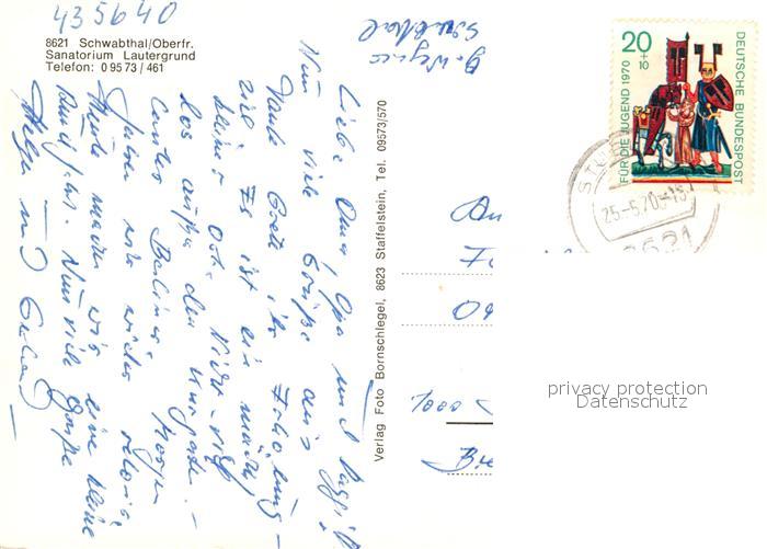 73009281 alte Postkarte Schwabthal Sanatorium Lautergrund Foyer Waldweg postalisch gelaufen Erhaltung siehe scans [WerneD78] KatCode: 11110009478165