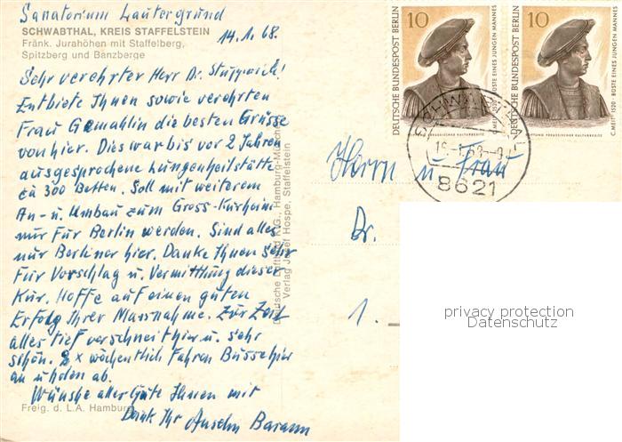 73761918 alte Postkarte Schwabthal Sanatorium Lautergrund mit Staffelberg Spitzberg und Banzberge Fliegeraufnahme postalisch gelaufen Erhaltung siehe scans [FriedD77] KatCode: 11110009478165