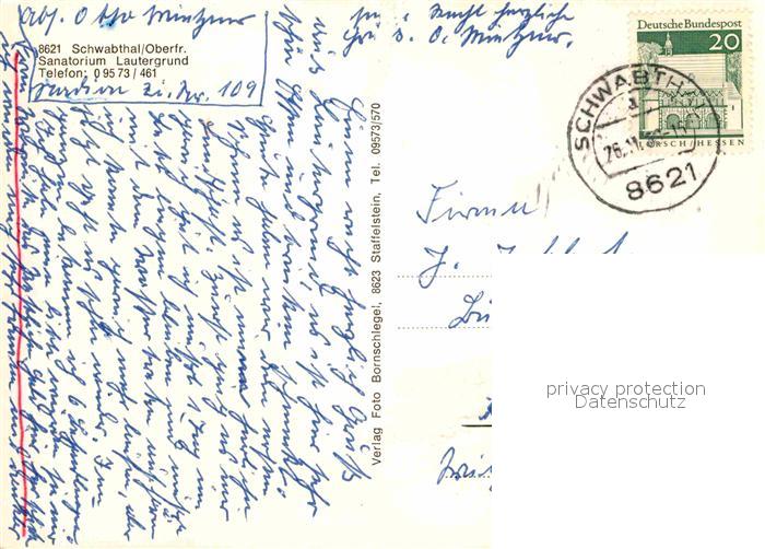 72824209 alte Postkarte Schwabthal Sanatorium Lautergrund Waldweg postalisch gelaufen Erhaltung siehe scans [FriedD77] KatCode: 11110009478165