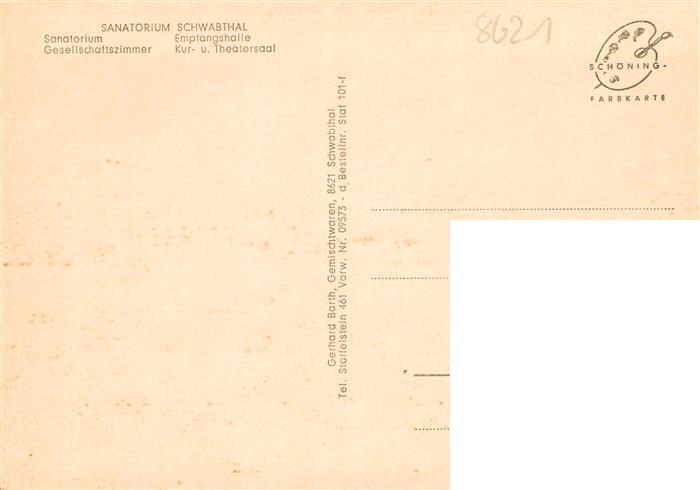 73936728 Schwabthal Sanatorium Schwabtal Empfangshalle Gastraum Theatersaal postalisch nicht gelaufen Erhaltung siehe scans [WerneD78] KatCode: 11110009478165