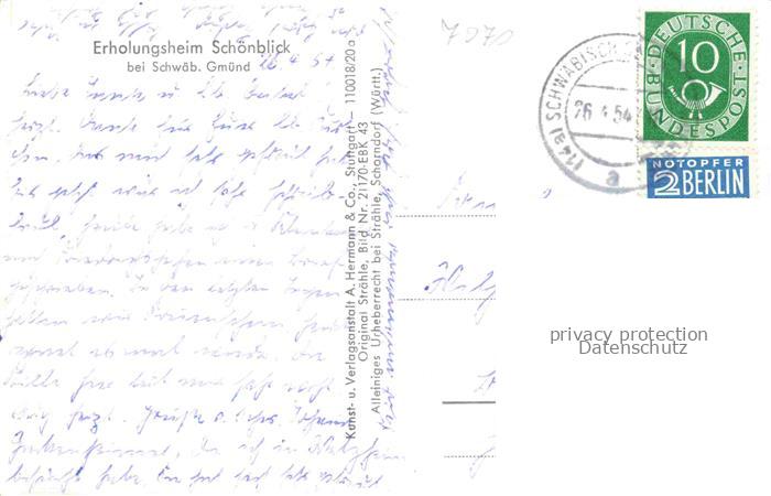 74064058 alte Postkarte Schwaebisch Gmuend BW Erholungsheim Schoenblick Fliegeraufnahme postalisch gelaufen Erhaltung siehe scans [WerneD78] KatCode: 11110008136065